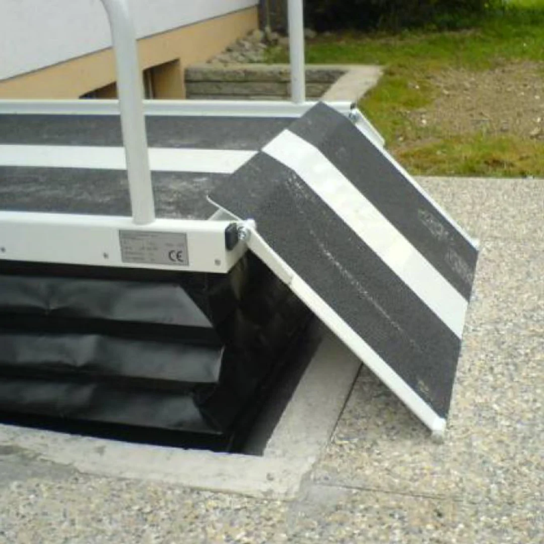 - Automatisch klappende Auffahrrampe am unteren Zugang