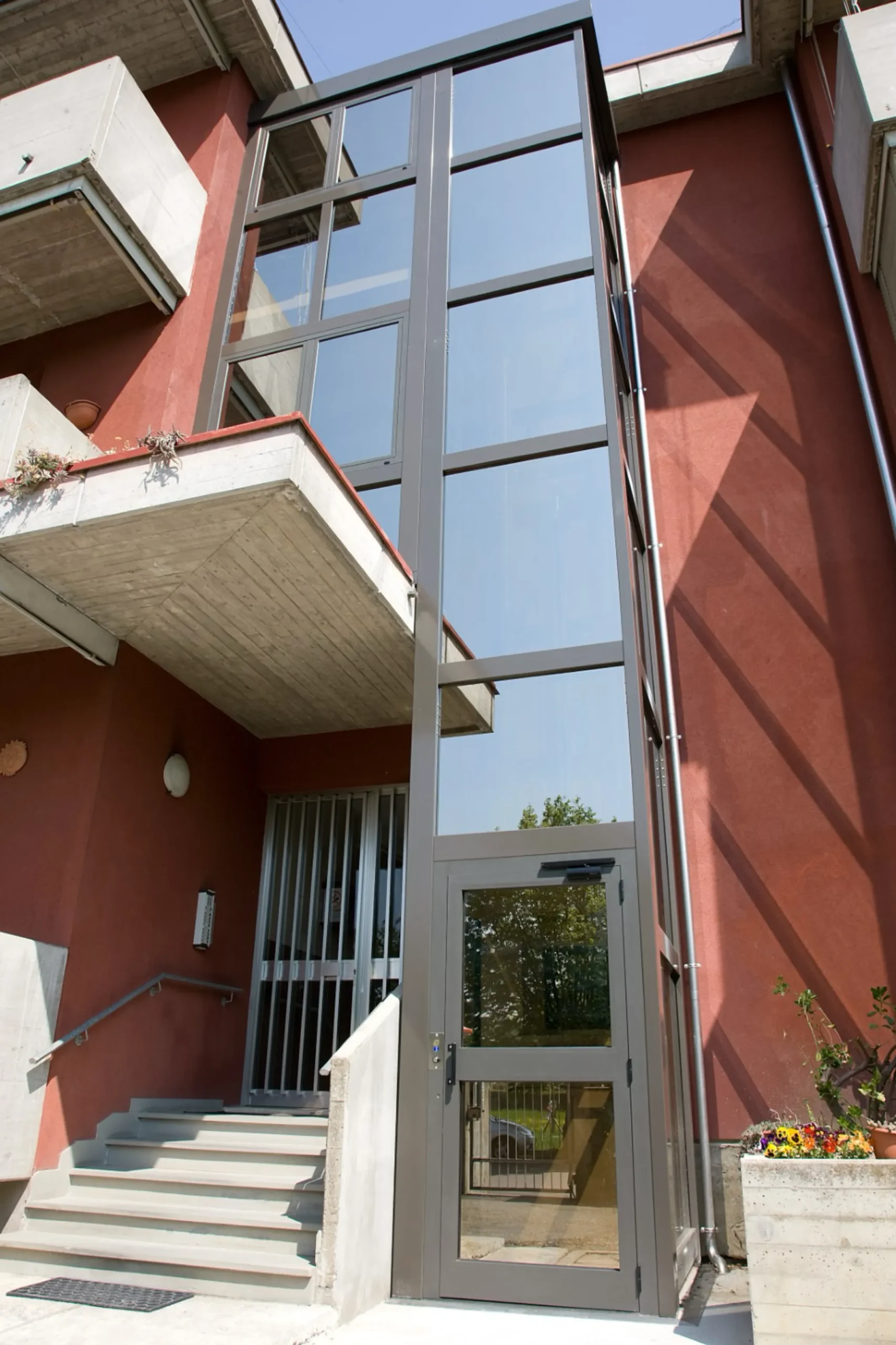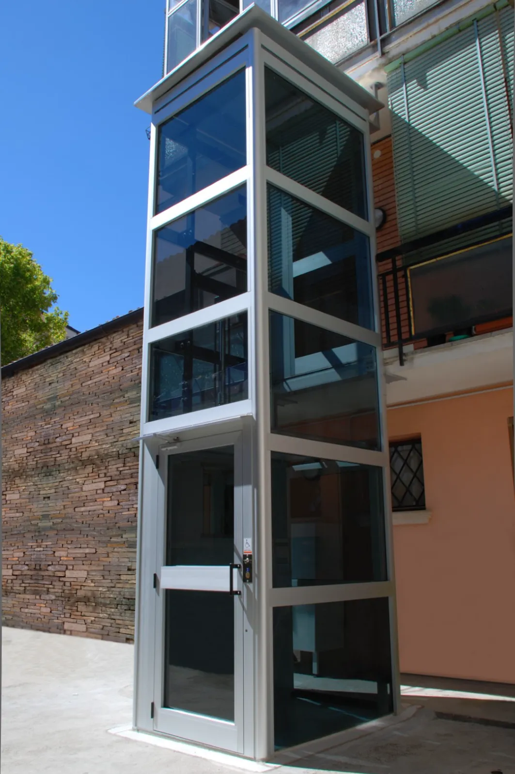 Je nach Anwendungsfall kann der vielseitige Sirio in einem bauseitig erstellten oder bereits bestehenden Mauerschacht eingesetzt werden. Ebenso ist der Sirio auch mit einem eigenen Schacht zu haben. Dieser besteht überwiegend aus Glasflächen und einem selbsttragenden Stahlgerippe. Dadurch kann der Lift freistehend eingesetzt werden, ohne zu massiv zu wirken oder viel Licht zu nehmen.