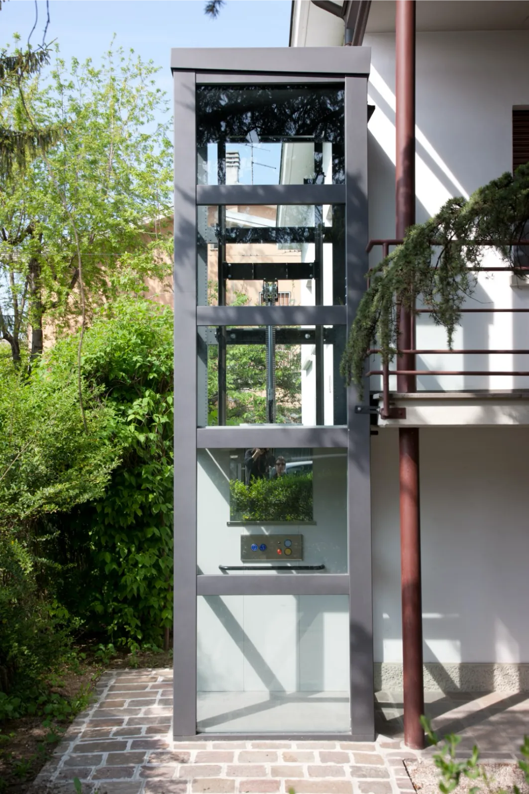 Den Homelift „Sirio“ kann man funktional mit einem klassischen Aufzug vergleichen, ist aber deutlich schlanker konstruiert und eignet sich daher besonders gut für das Eigenheim oder den nachträglichen Einbau in Mehrfamilienhäuser.