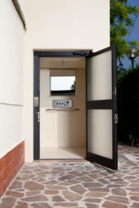 Die Kabine und der Schacht sind standardmäßig in Weiß, Cremeweiß oder Anthrazit, können aber auch in beliebiger Farbe ausgeführt werden.